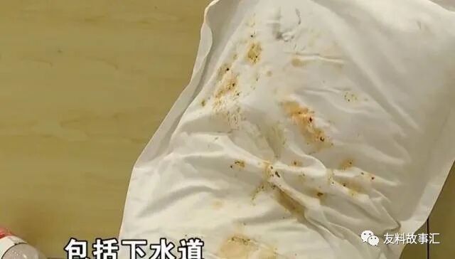 通过镜头,我们看到房间内一片狼藉,地上到处都是垃圾,枕头上也是分不清是什么的污渍,卫生间的马桶也被浴巾堵住了。