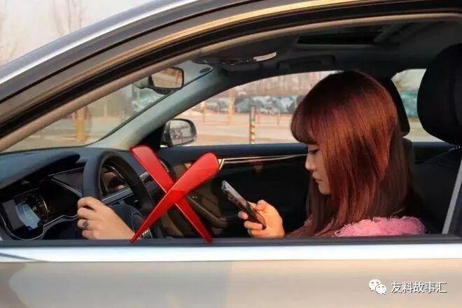 由于前车的女司机在等红灯的时候玩手机,根本就没有注意绿灯亮了。