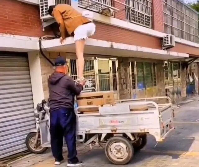 好在男同事家住三楼,外阳台上都是空调外机,女子顺着外机艰难下行。来到二楼之后,眼看着没有路可走,就想咬牙跳下去,然后就碰到了大爷骑着电动三轮车路过。