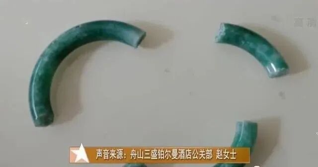 一名女子住在酒店,在浴室内摔倒了,把手上的手镯摔成了几段。
