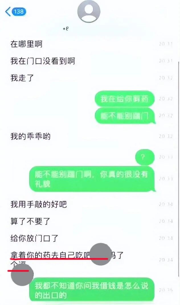 因为张女士本身非常不舒服,而且家里的药物自己也需要吃,正在给男子剪药的时候,男子竟然开始踹门,在门外辱骂张女士,张女士十分气愤,自己好心赠药,凭什么还要遭受这样的待遇,没想到男子十分不讲理。
