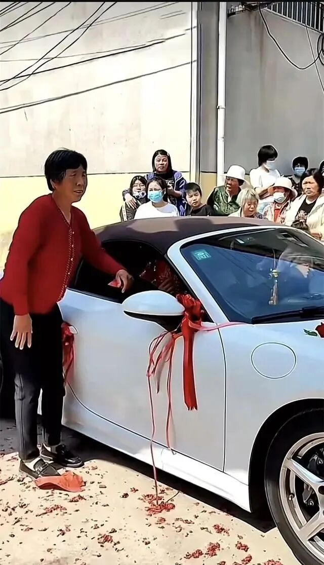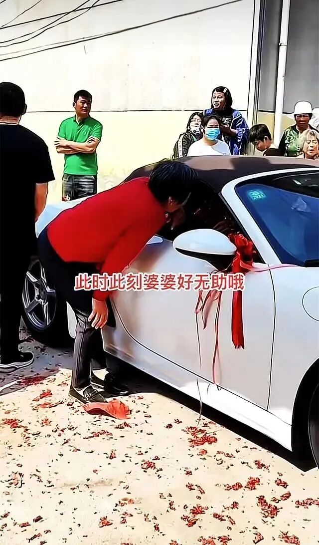 为了儿子的婚姻,婆婆卑躬屈膝在婚车面前劝说着儿媳妇,向她保证钱肯定会给的,今天先把婚礼仪式完成。