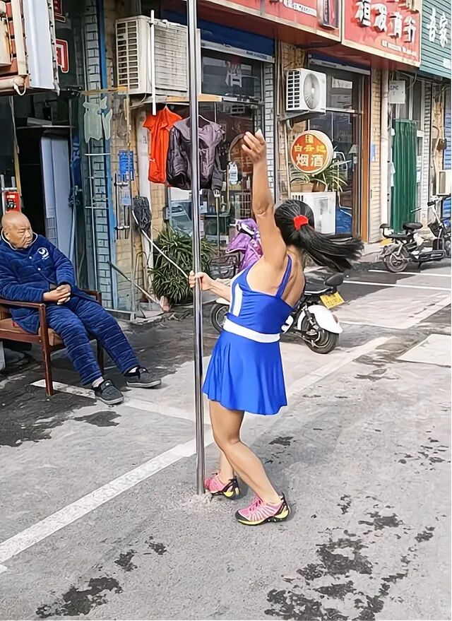 据作者了解,跳钢管舞的大妈,自从把这根钢管立在店铺门口后,就引来了许多人围观,她和老伴守着店铺一边经营生意,一边享受生活,当有人进店买东西,女子就会热情服务,没有人的时候,大妈就会从里面走出来一边晒着太阳一边跳钢管舞。