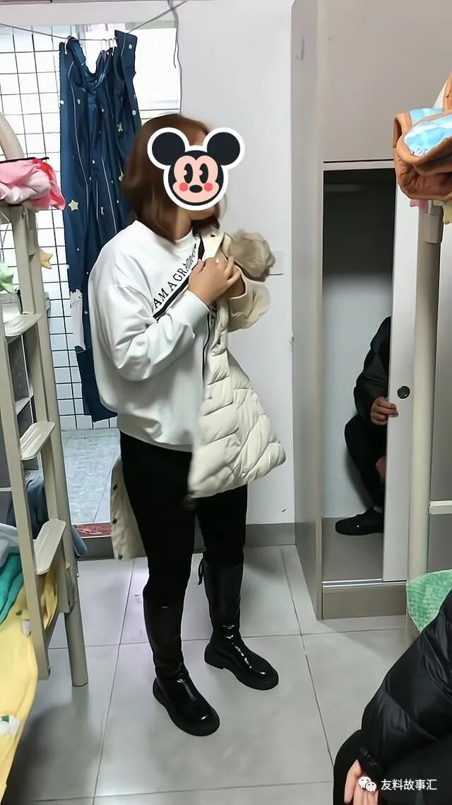 当她敲门的时候,她的朋友在宿舍里和男朋友闲聊,朋友不想让她知道自己交了一位男朋友。