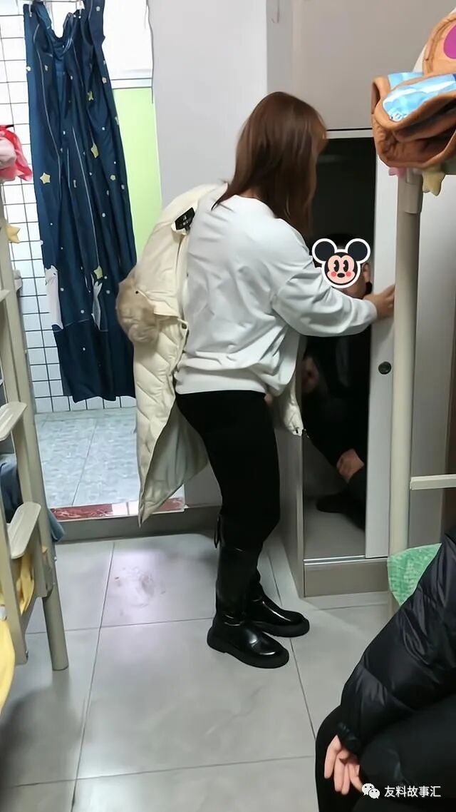 就在来开门之前,朋友担心她知道自己谈恋爱了,所以叫男朋友躲进衣柜里。