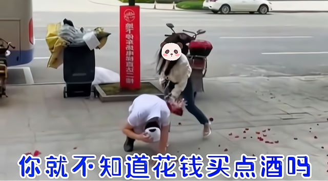 女子一边打男友,一边嚷嚷:又是花,又是花,就知道送花!你就不会送酒吗?我不喝醉,你怎么有机会?
