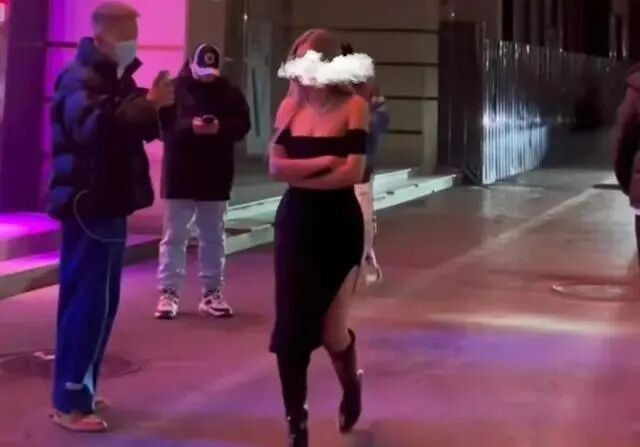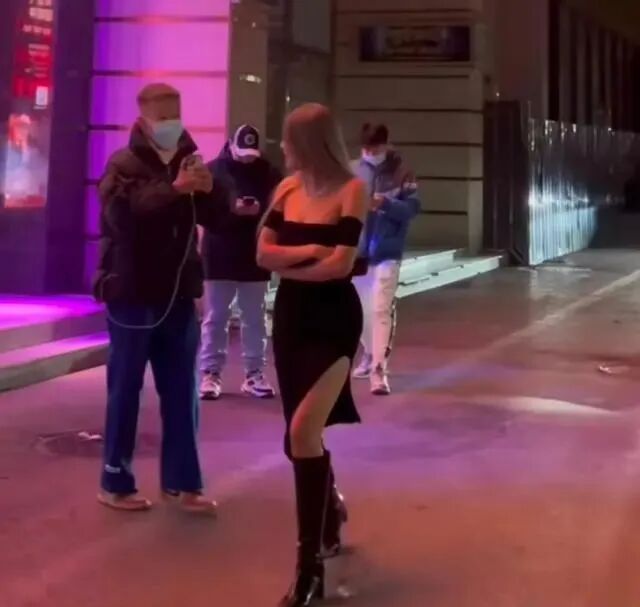 女子刚一出现,就成功吸引了路人的关注,成为了全场焦点,甚至还有人拿着手机一路贴脸跟拍。