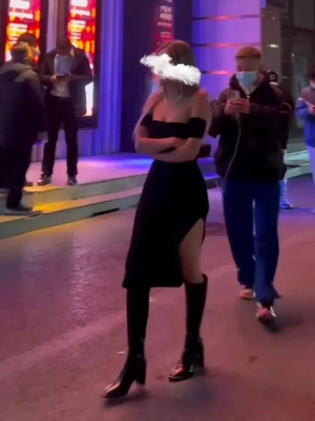 一位网友在夜晚逛街时被一名女子吸引了目光,不为其它,只因为这名女子在寒冬腊月的苦寒天气只穿了一件薄薄的低胸连衣裙。
