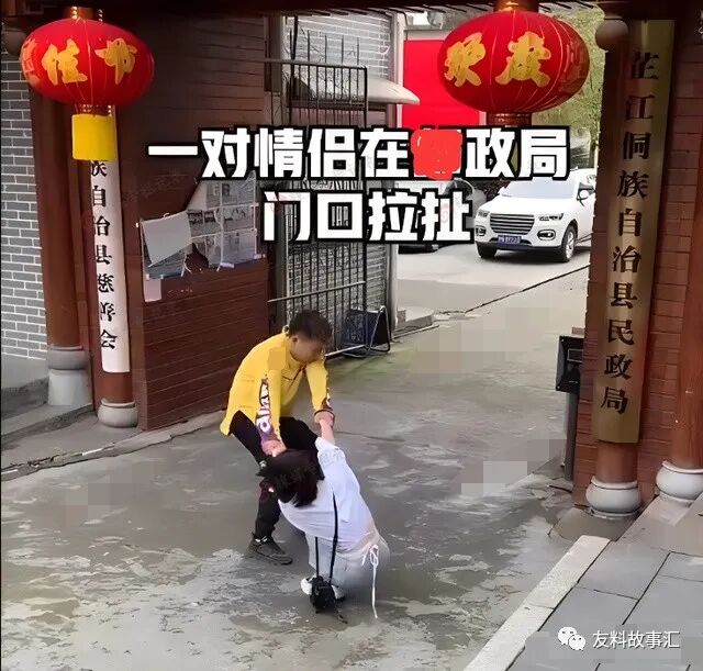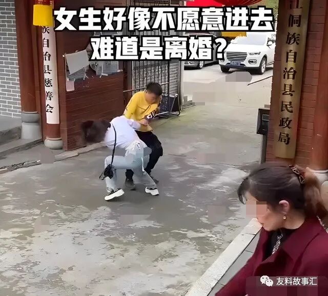 在民政局门口就亲眼目睹了这样一幕,一名男子拉着一名女子要进去,可是女子死活不肯跟着男子进去,一开始网友以为这两人是一对夫妻,进去是要离婚的,女子可能比较重感情,不愿意和丈夫离婚