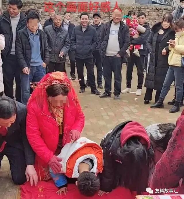 河南一女子带着五个孩子再婚,嫁给了自己的初恋,婚礼现场,孩子们齐刷刷跪下来给奶奶磕头,老人开心地挨个发红包。