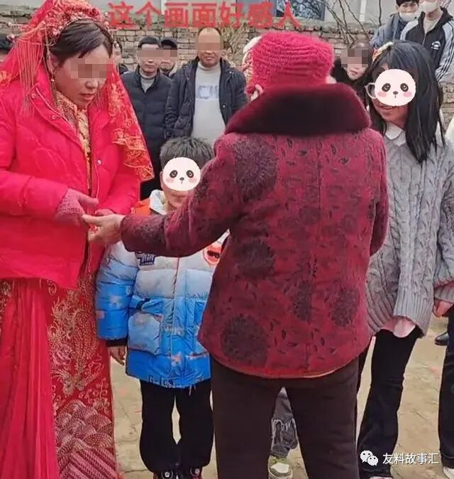 婚礼这天,新娘带着五个孩子一起出嫁,孩子们更是给程母跪下磕头,老太太一下子多了五个孙子孙女,乐得合不拢嘴,拿出红包挨个发。
