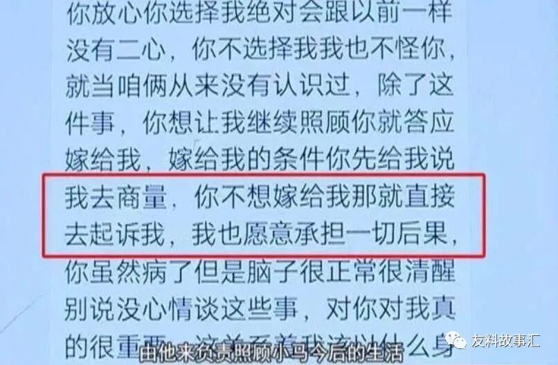没想到,小张竟然以医疗费为筹码胁迫小马嫁给自己。他信誓旦旦地表示只要两人结婚了,自己会承担所有的医疗费,而且还会把小马当成家人一样照顾。