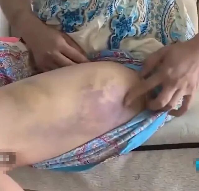 眼前这个一脸委屈的女人叫做杨珊,她腿上的淤青让人看得触目惊心。