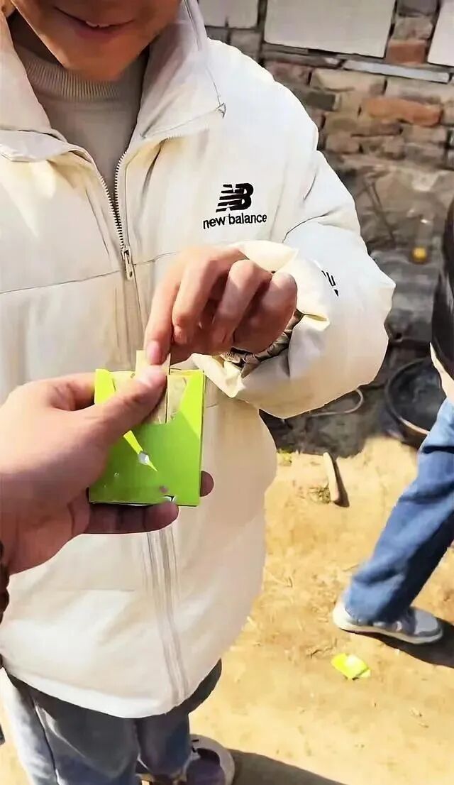 见到众人不抽烟,男人又从兜里掏出一盒口香糖,对众人说这是喜糖,让大家伙儿拿一片尝尝,看来还是想图个吉利。
