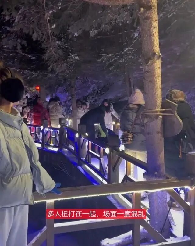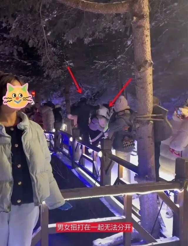 在东北一个冰雕展览中,一名女子和一名男子正在漫步走在雪地里,突然女子看到对面走来的一对男女之后,非常气愤的上前理论,当矛盾升级之后,男女两人扭打在了一起。而男女两人各自的玩伴见状,刚开始是拉架,后来也参加了混战当中,据知情人将当时的场面一度十分混乱。