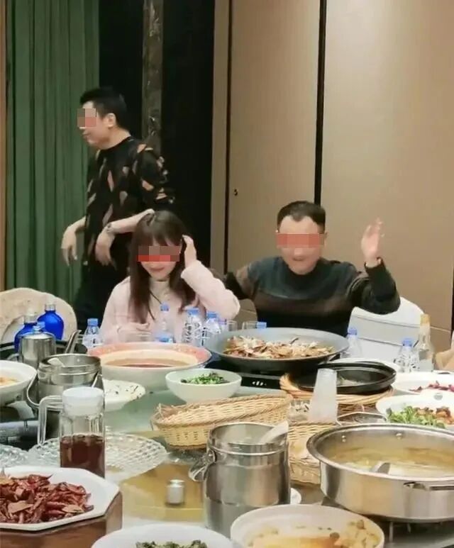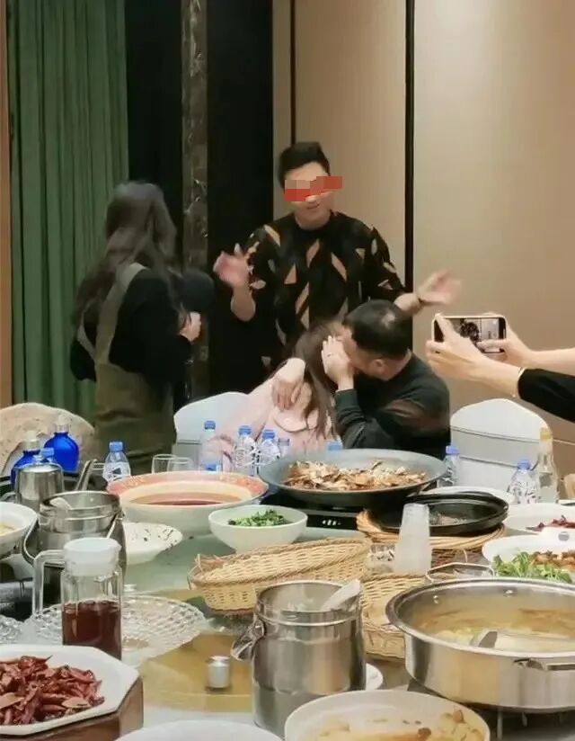 看到现场玩得有点大,穿着墨绿色背带裙的女人大概有点坐不住了,赶紧转身逃离了现场,而桌子对面的女同学则是一直举着手机,全程将这一幕给记录了下来。