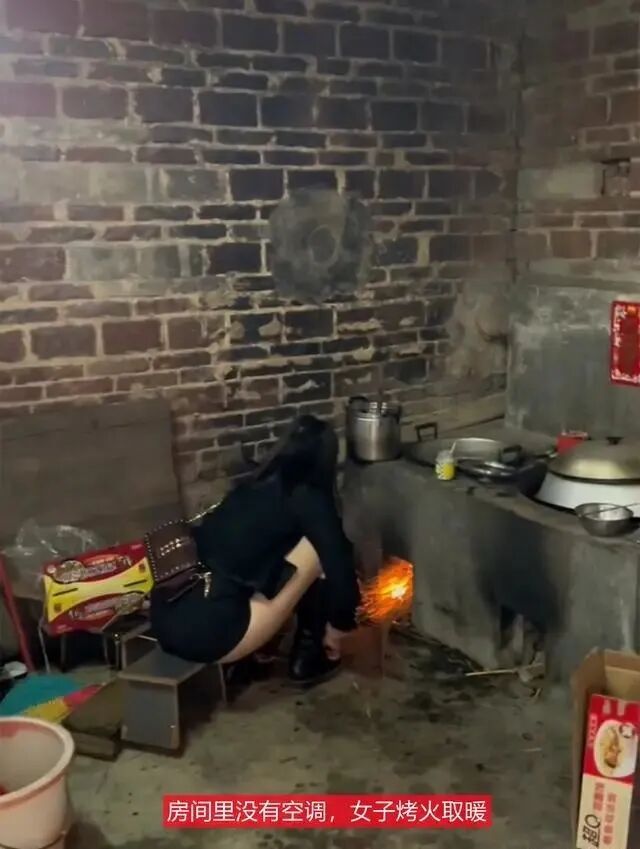 其次是砖头盖的房子,条件十分简陋,房子里没有空调,厨房里没有接通自来水,烧饭和喝的水都是从院子里的井水打上来之后,沉淀一段时间才使用。而且没有空调,女友只能坐在灶台旁边烤火取暖。