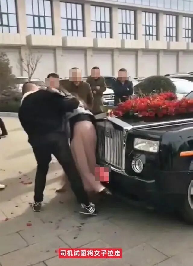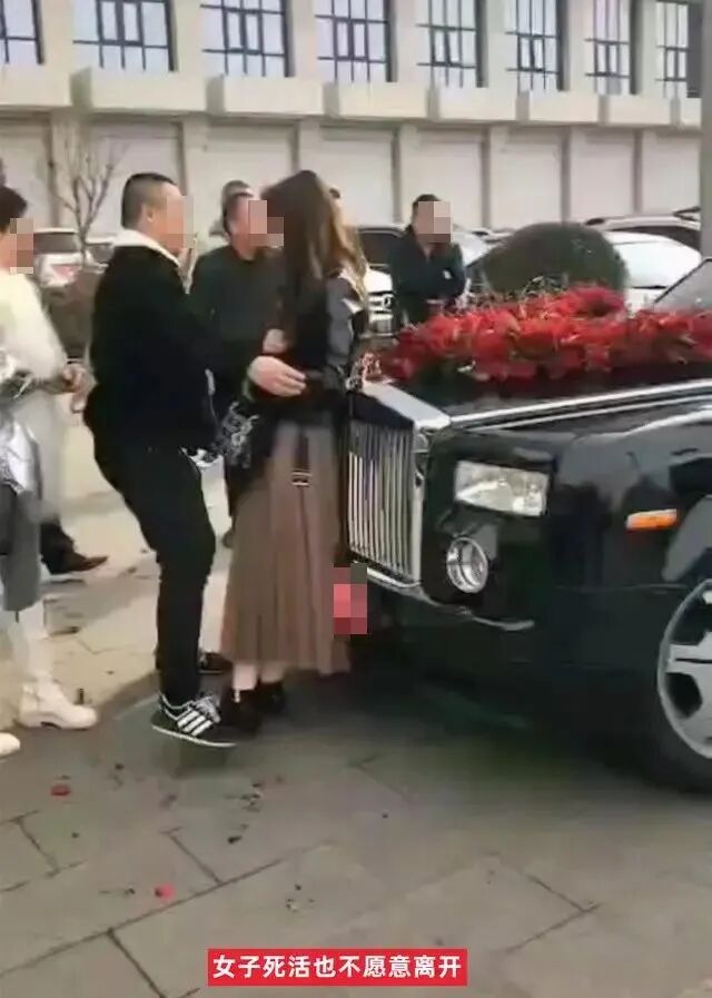 但是新郎自始至终都没有下车,任凭前妻在车前面哭闹。