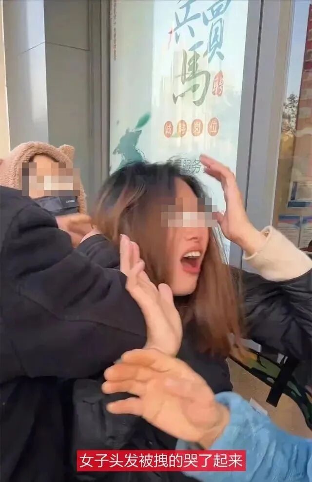 不过随着女子的哭喊声,丈夫才恍如梦醒,开始抓住妻子的双手,想要拉架结束这场闹剧。
