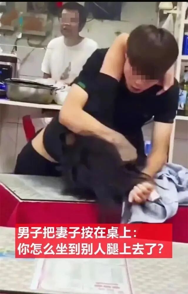 她的丈夫一边打还一边质问她:“你出来吃饭,怎么坐到别的男人腿上去了?你不是说你出来工作的吗?”