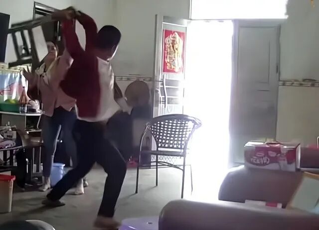 当她看到打自己的是自己老公时,情绪瞬间“爆炸”,一骨碌爬起来拎着椅子对着丈夫就砸了下去。