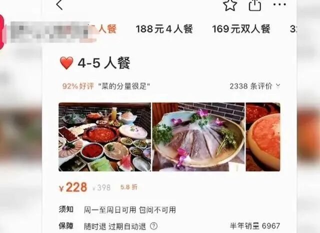 原来这顿饭是夏女士事先在某平台上团购的优惠套餐,上面显示的是4-5人套餐228元,那么现在还要买什么单呢?
