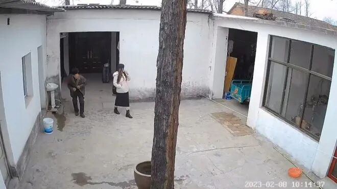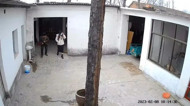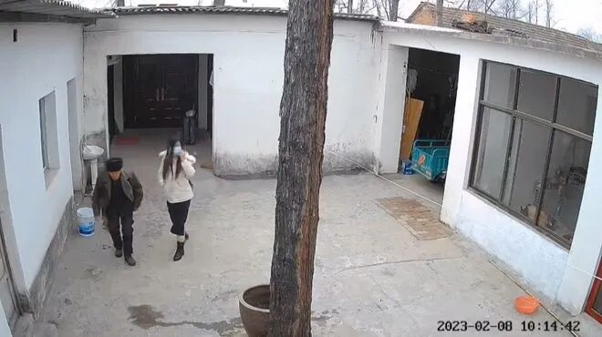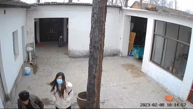 这件事情中的原配妻子发布了家中一段长达三十秒的监控画面!画面中的女子已经进入了家门,并且对着眼前的院落四处打量!