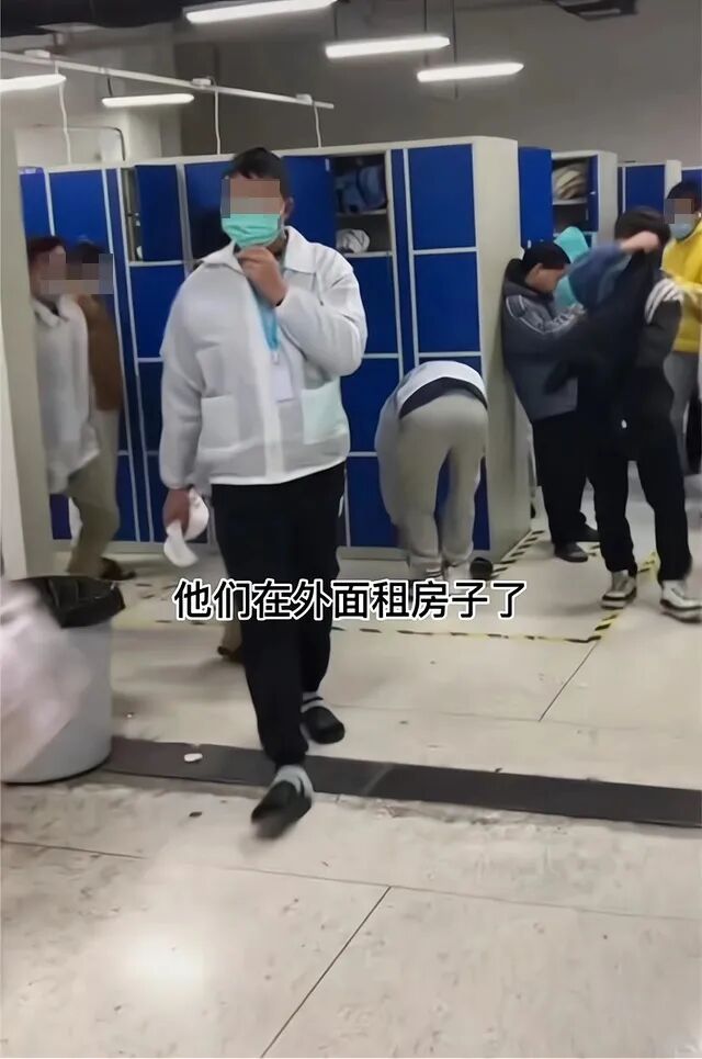 画面中一名长发的女子,身穿白色棉服身材高挑,打扮也比较亮丽!她拉着行李箱叩响了紧闭的大门!