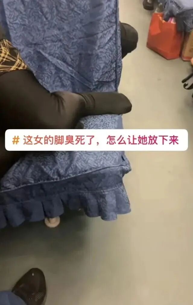 大叔买了一张硬座,而对面座位则是一位大妈。或许是大妈累了,或许是觉得座位只有她一人。没过多久,大妈肆无忌惮地脱下鞋子,躺在椅子上呼呼大睡,可能连她自己也不知道,脚臭的味道实在有点大,以至于让正在打瞌睡的大叔惊醒了。