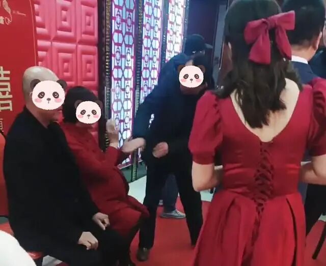 有宾客忍不住上前,非要拉着喜婆婆站起来,让她转一圈给大家看看。喜婆婆笑着摆摆手,不想配合他们。