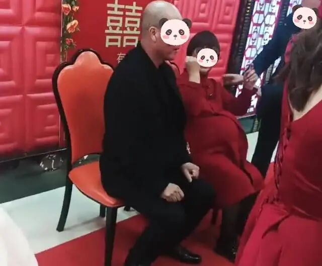 对这个情况,新娘感觉过于震惊,再去看新郎时,发现他也一副尴尬的样子,不知道他是否知情。