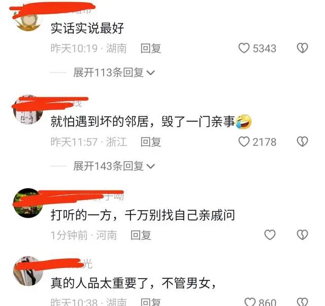 还有网友评论说,就怕遇到坏邻居,没事也说有事,毁了一门亲事。