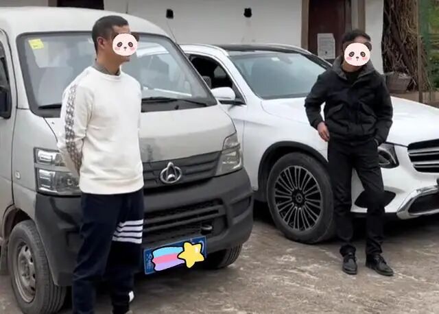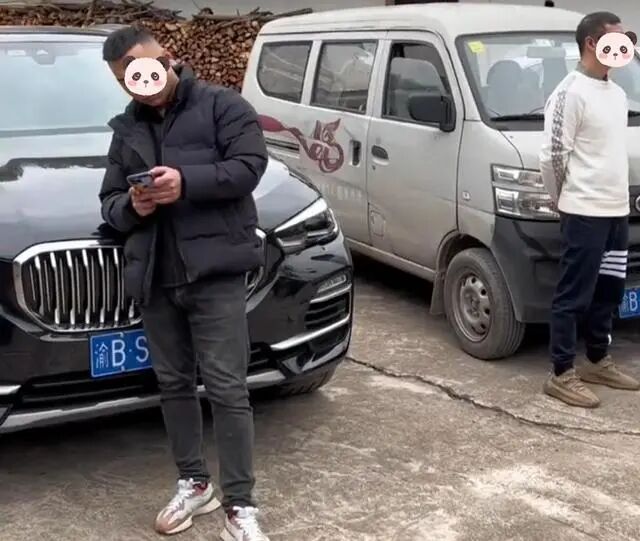 三个小伙全都是开车过来的,其中两个小伙开着崭新的豪车,打扮得特别精神,另一个小伙开着一辆很旧的面包车,夹在他们中间手足无措。