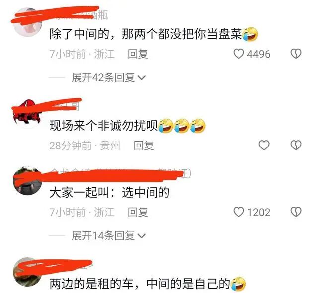 有网友评论说,别看两边的车是豪车,但有可能是租的,中间的虽然破旧,但是自己的。