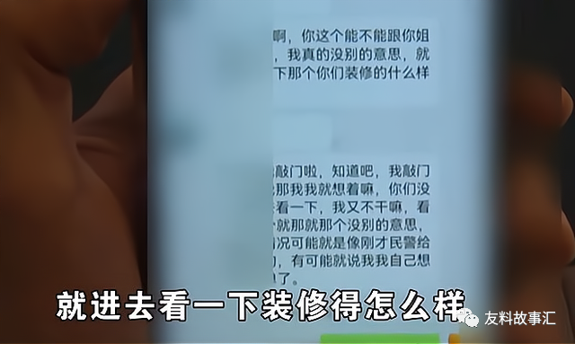 后来那位男邻居报了警,并说明了情况,后来又给小丁发来语音表示,希望小丁跟他的姐姐说说,他真的没有别的意思,就是到小丁家看看装修,当时他也敲门了,只是没有人,他只是进去看一下而已,并表示民警也告诉他是想得太简单了。