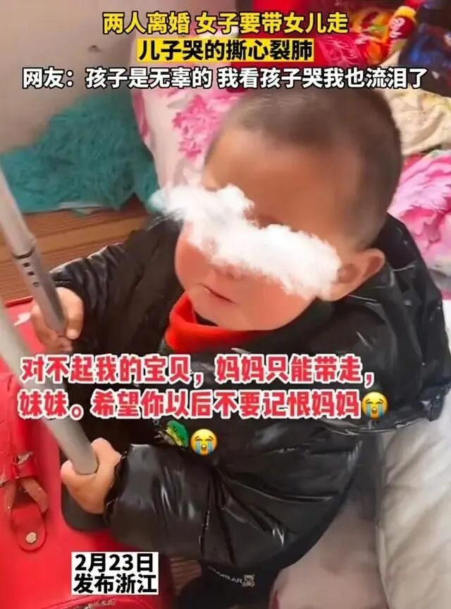 女子离婚要带女儿走,三岁儿子拽着行李箱不撒手?