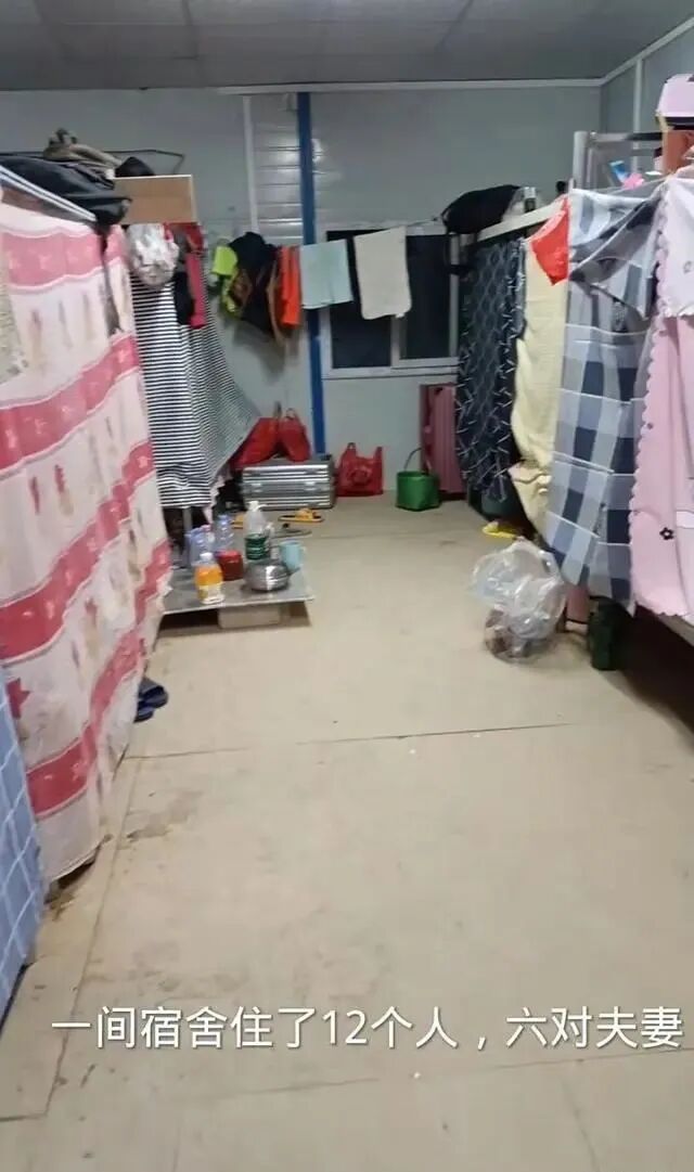 湖南女子随丈夫打工,6对夫妻挤1间宿舍用布帘避嫌,讨生活没办法