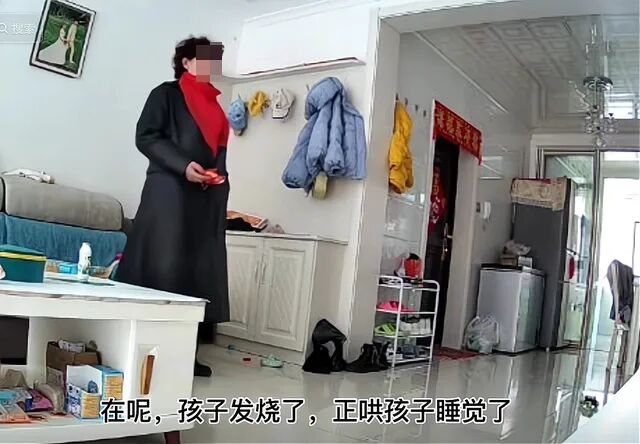 此时儿媳告诉婆婆,自己在家呢,并且还说,孩子正在发烧,自己在哄孩子。