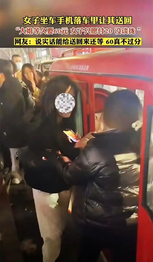 因为前前后后等待了大概一个小时,大姐就觉得20元并不能弥补这段时间所造成的损失,向女人提出了60元费用的要求。