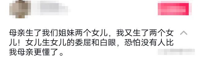 女子说没想到自己生了两个女儿又揭开了母亲的旧伤疤,有人说不能生儿子怕是遗传的?这种无稽之谈居然有很多人信。