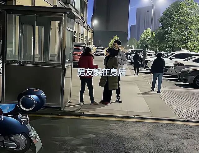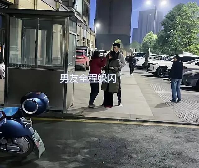 和女子在一起的男子,也就是女子口中的“男朋友”,个子明显比女子高出不少,但是在面对这样的情况时,全程躲在女子身后,一语不发。