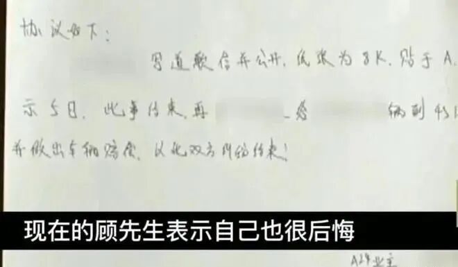 此事原本是顾先生有理的事情,但就因为他的冲动,让原本他有理的事情变成无理了,最后写道歉信还要赔偿对方车子的损失,真是丢了面子又丢了里子。