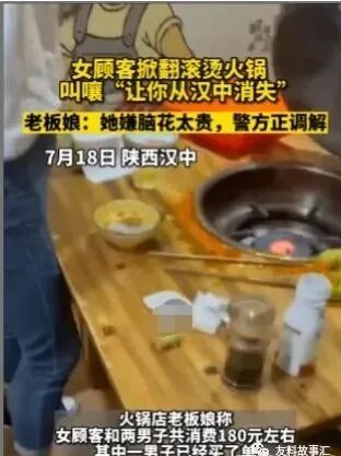 这女的能耐可不小,不仅徒手先翻了桌上的火锅,还叫嚣着要让老板娘消失在汉中。女子在这家店到底发生了什么事,竟让她如此暴躁?