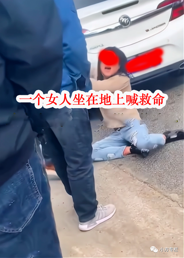 只见传出声音的地方,一个披头散发的女子坐在地上大喊大叫,旁边一个男人还不停往她身上招呼,有人想过去帮忙,但立马被男子制止了。