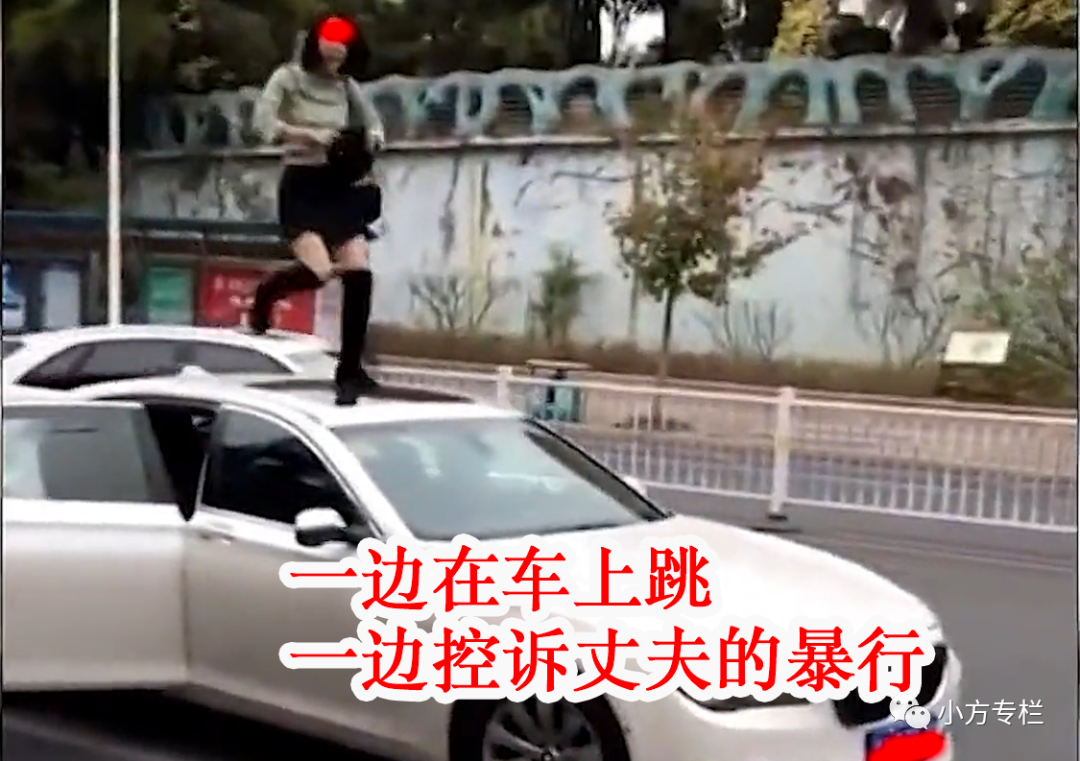 所以她直接在马路上拦到了自己丈夫的车,然后跳上车头,在上面一边跳一边控诉丈夫对自己的种种不公。
