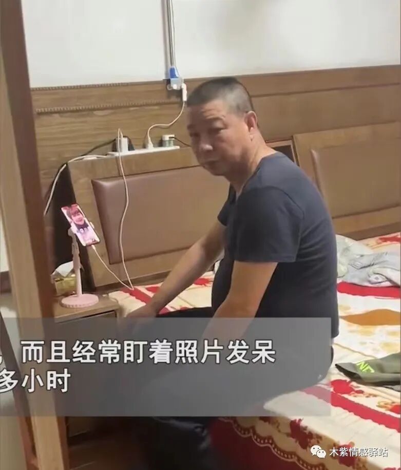 女儿走进卧室,看着眼前的一幕非常心疼,她说自从妈妈去世后,爸爸就把妈妈的照片设置成手机桌面壁纸,一有空闲就把自己关在房间里,看着妈妈的照片,一看就是半个多小时,这让她心里同样很难过。