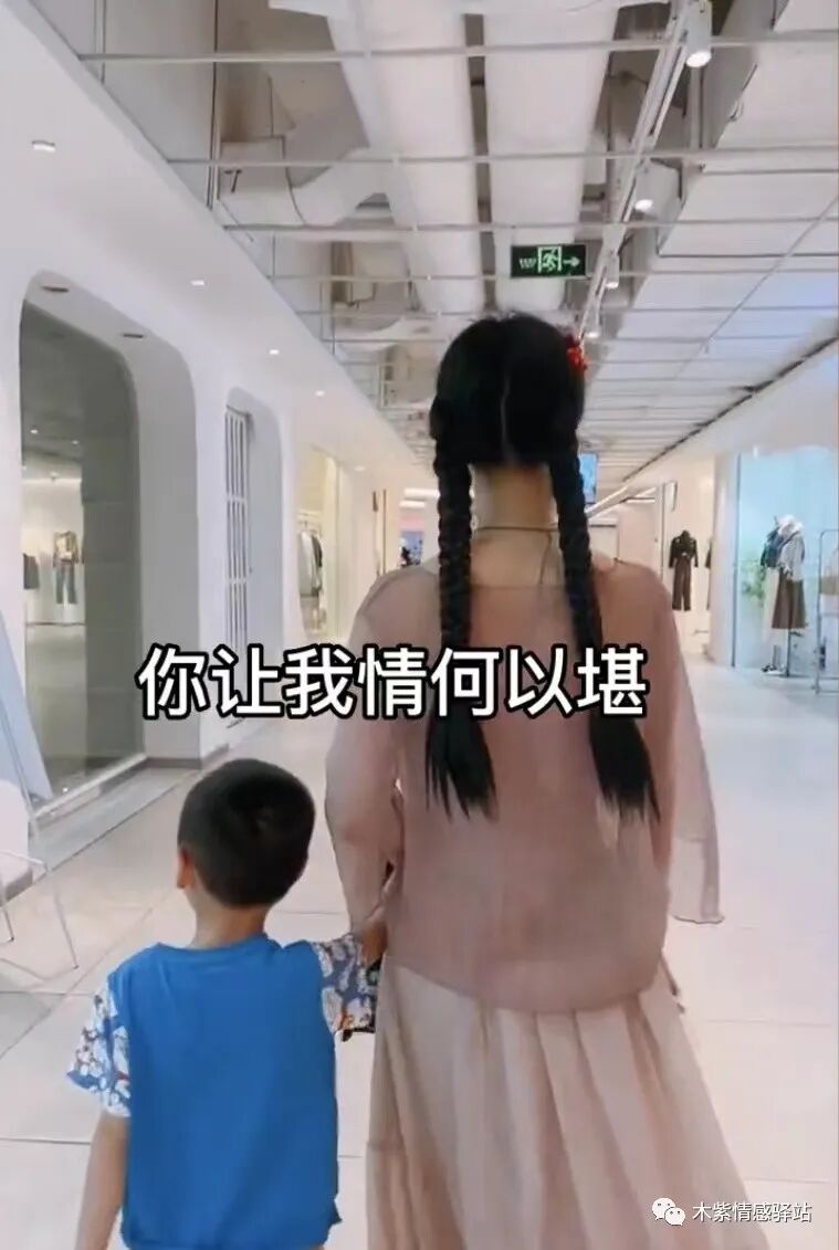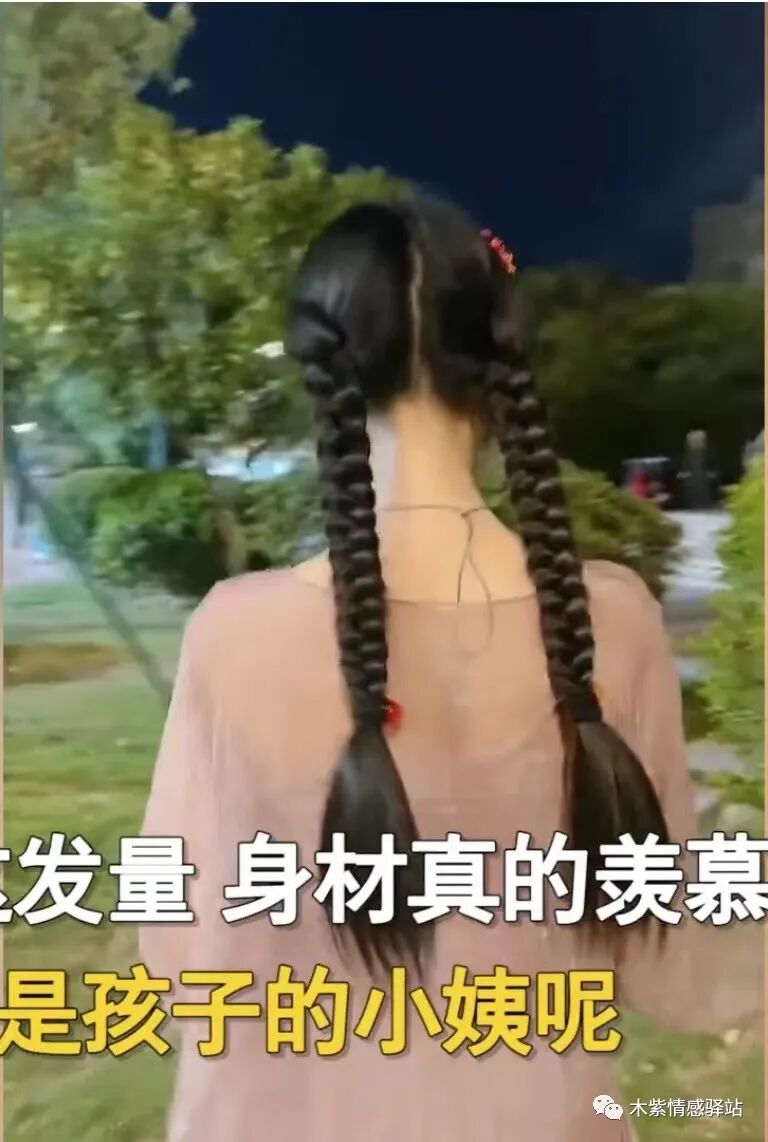 很多路人被这位美丽的少女背影给吸引住了,他们猜测这应该是孩子的小姨,因为孩子的妈妈手拿手机,正跟在后面拍摄。