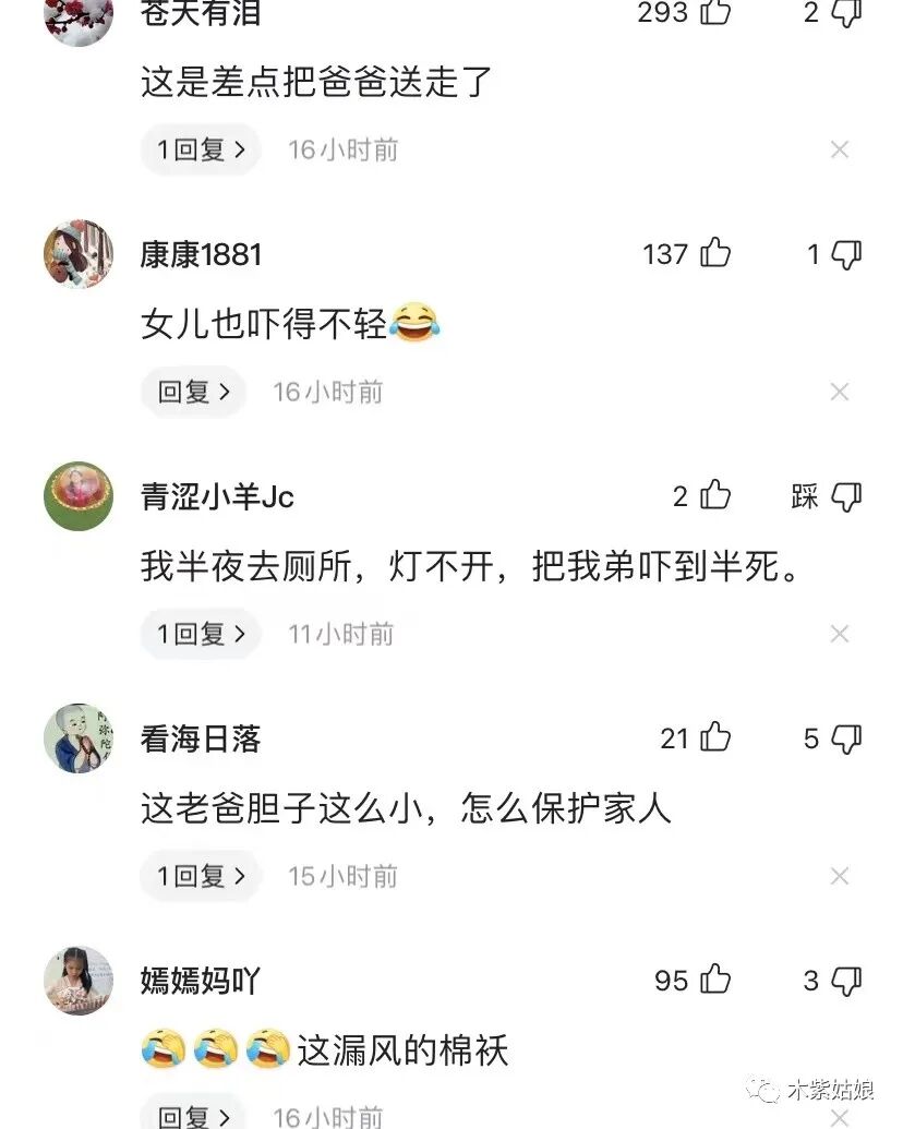 看到爸爸被女儿吓得如此狼狈,网友们都笑疯了。