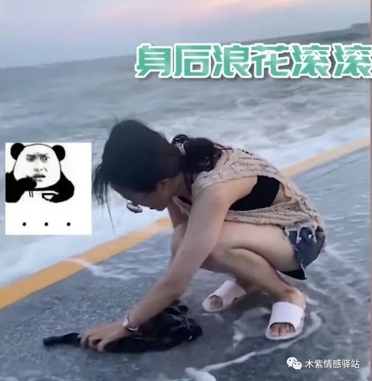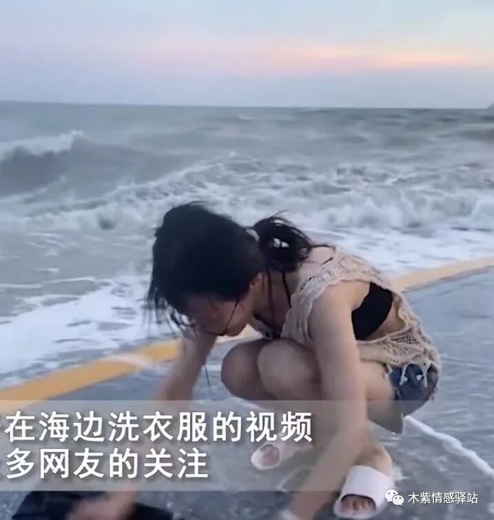 第二:女子这样在海边洗衣服太危险了,根本没有顾及到身后的海浪,一波一波不断涌上来,让人好担心。
