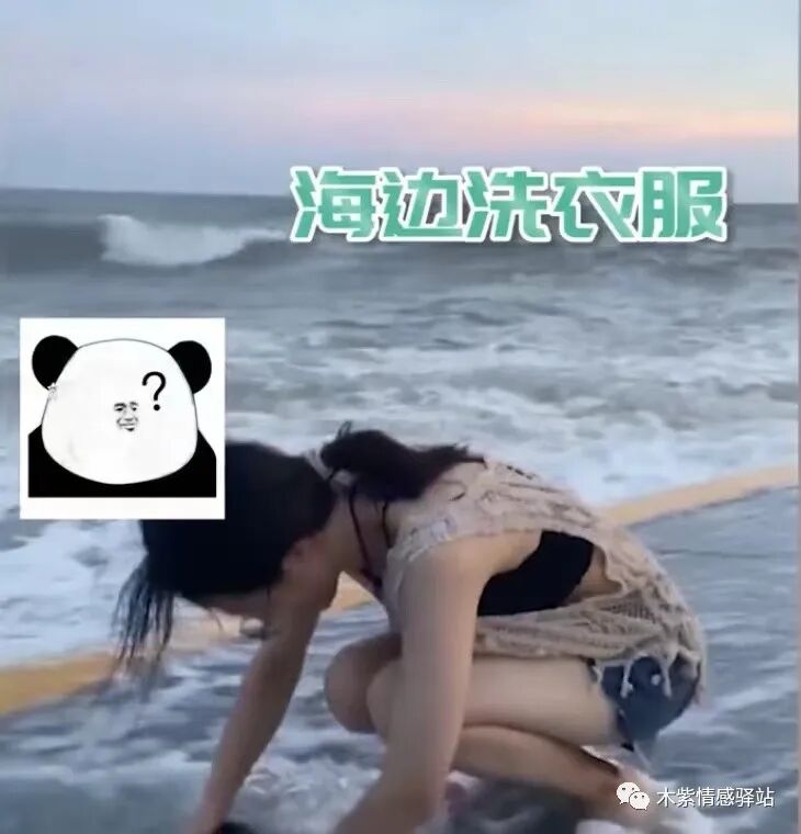 就像这位美女,在海边洗衣服,第一海水不能用来洗衣服,洗衣服只能用淡水,盐水有腐蚀性,洗完晒干,估计上面会有白花花的盐巴或者盐渍。